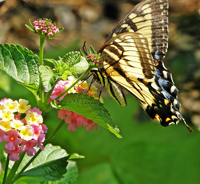 Your swallowtails are beautiful! The sweet potato vines magnificent. They must enjoy the hot weather, as we certainly cannot grow the vines like that. Almost every year I try some in a pot, but they don't grow much.