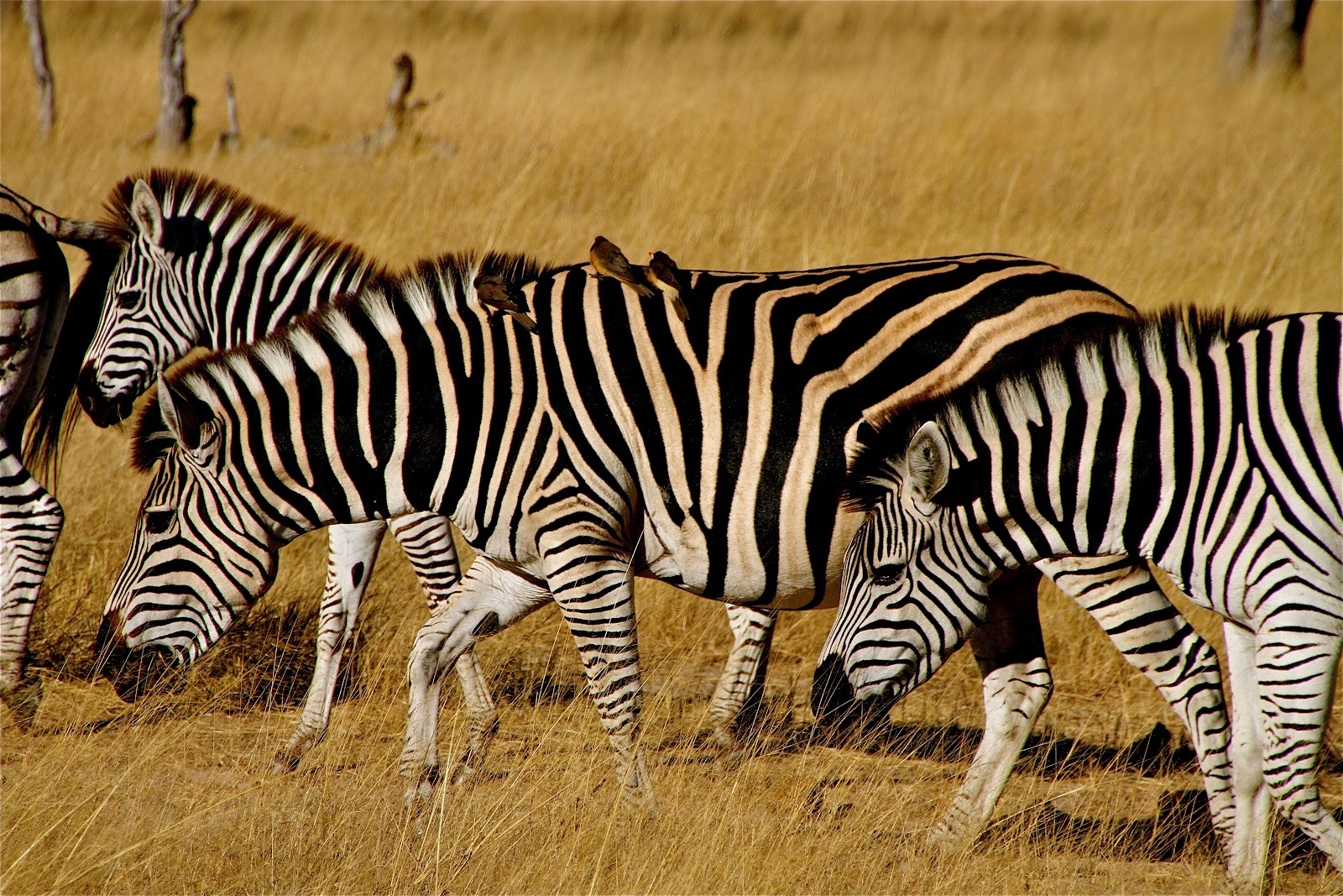 On these above you can see the Red-billed Oxpeckers searching for parasites on the back of the one in the center.